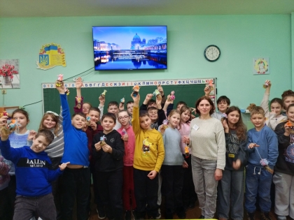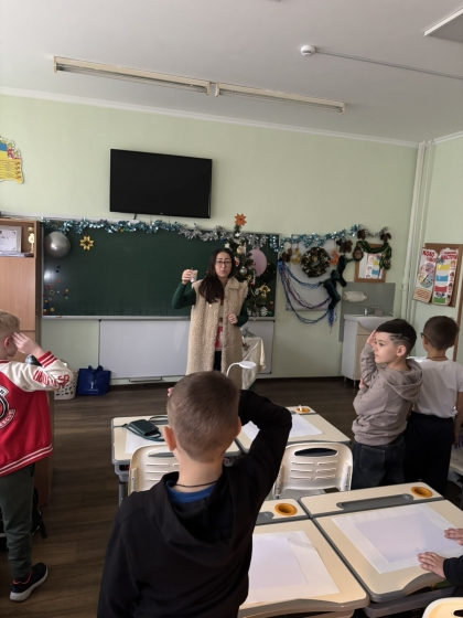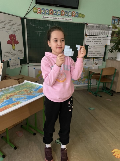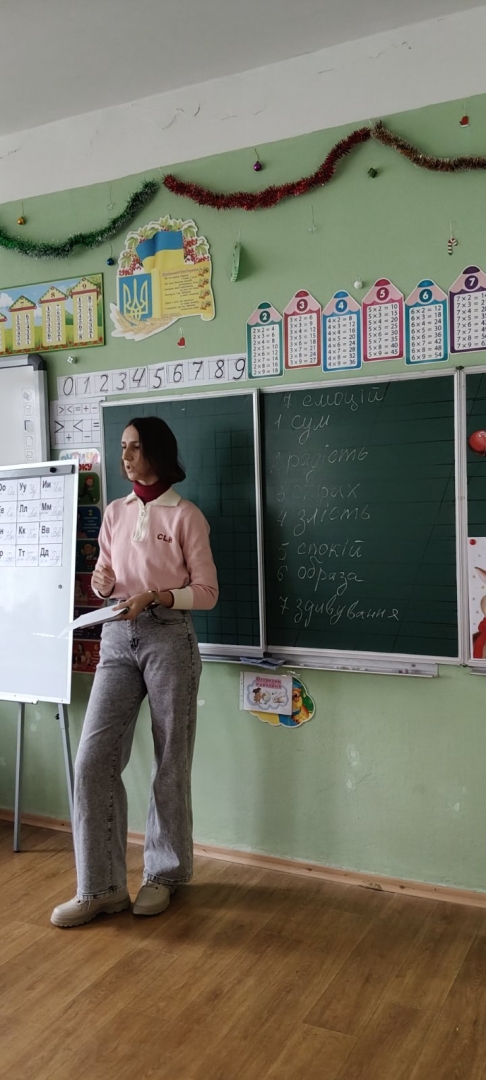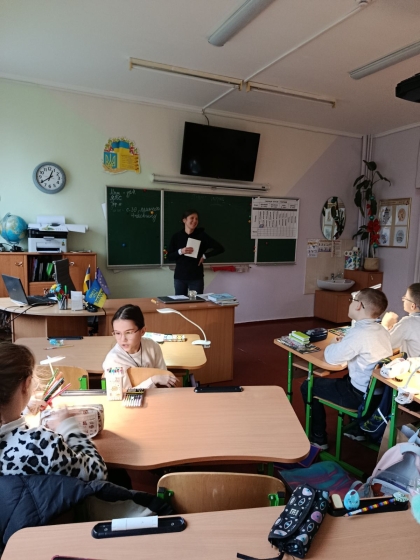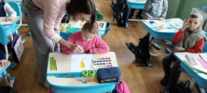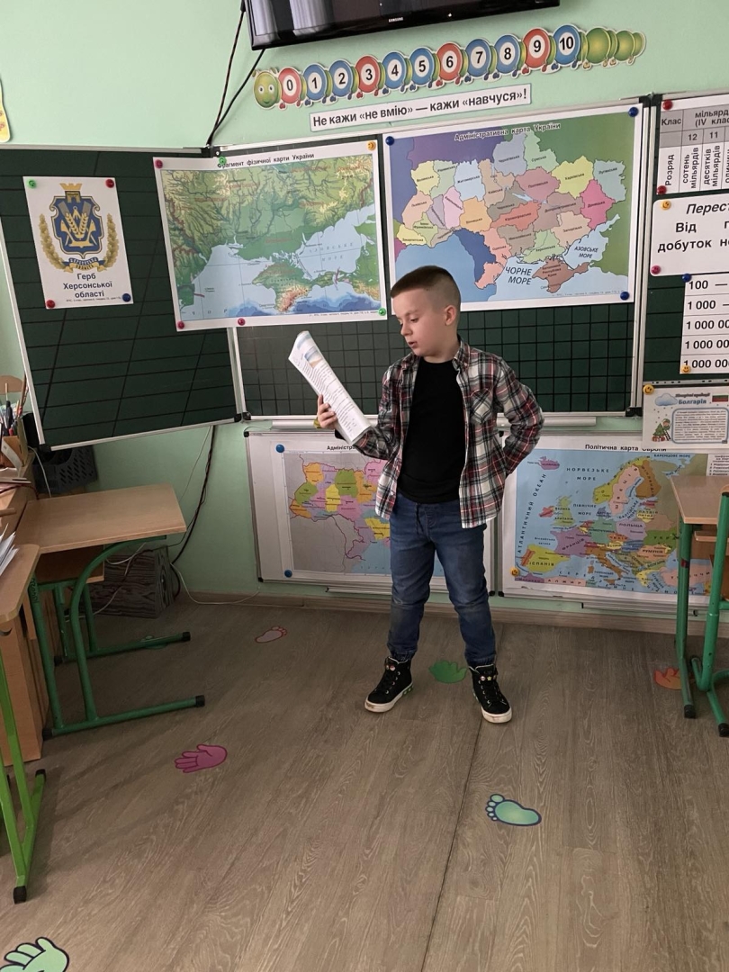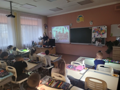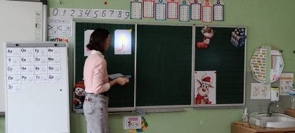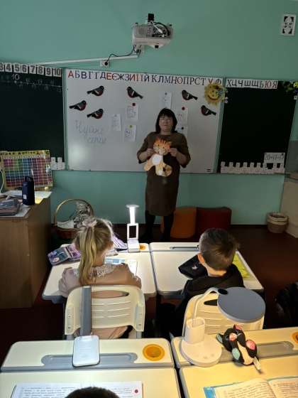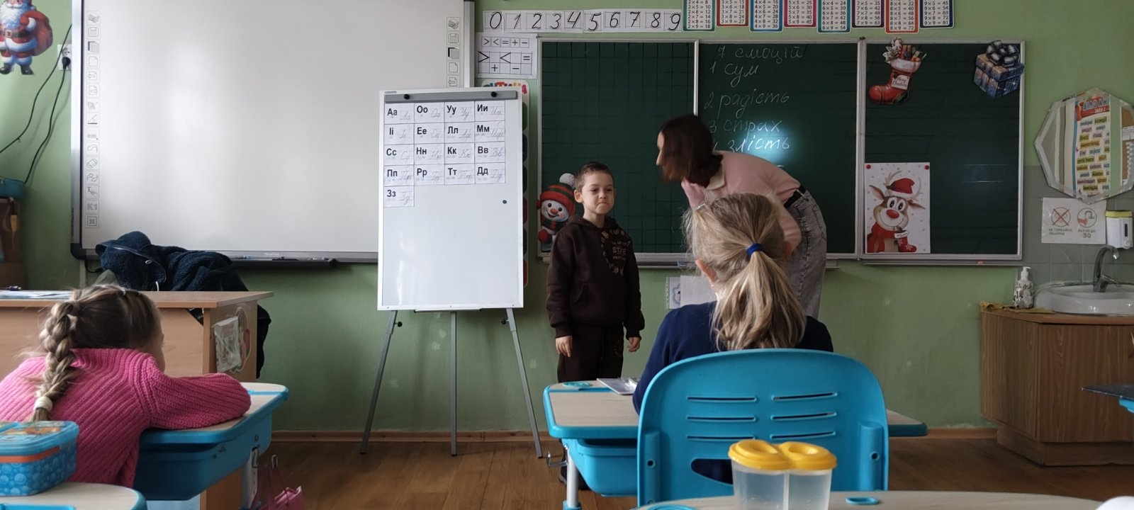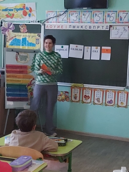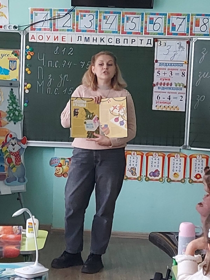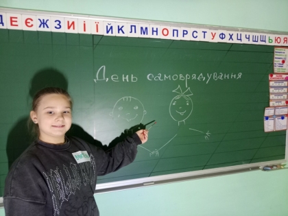 Урок української мови для учнів 1-А класу, в рамках Дня самоврядування, провела випускниця Вікторії Леонідівни Распутня Поліна.