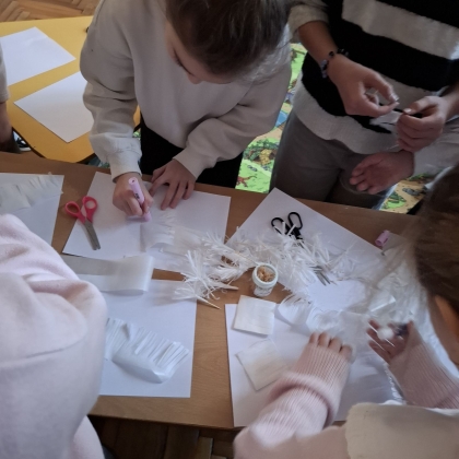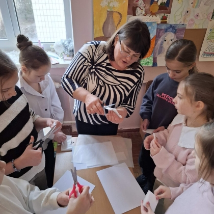 Сьогодні учні 4-класів із задоволенням працювали на майстер-класі по виготовленню об'ємної сніжинки, який провела Березівська Н.В. Кожен бажаючий мав можливість відчути себе майстром новорічних прикрас.