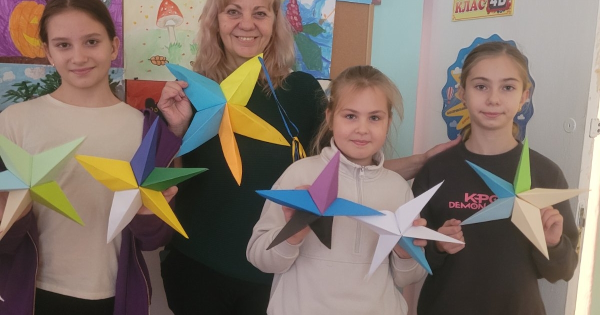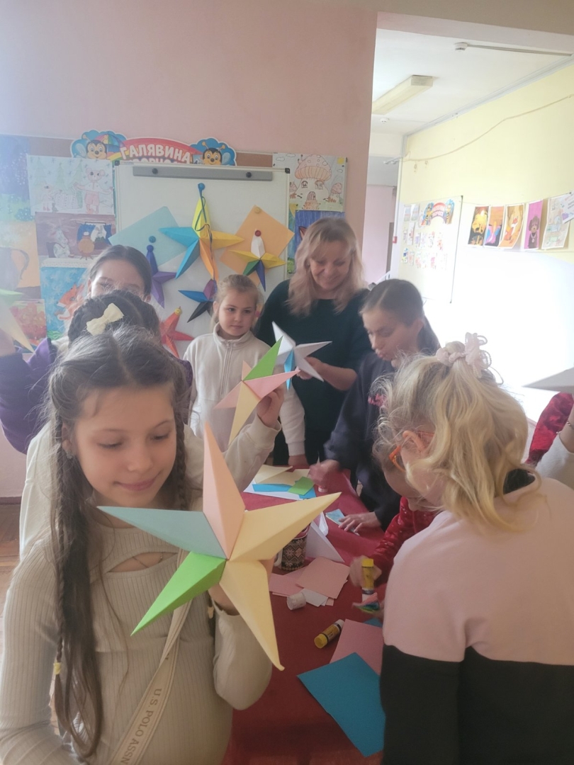 Цікавий майстер-клас провела Котова Н.В. разом з учнями 4-В класу по виготовленню новорічних чарівних зірок.